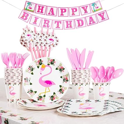 Flamingo Birthday Party Decorations Supplies Paper Cups Plates