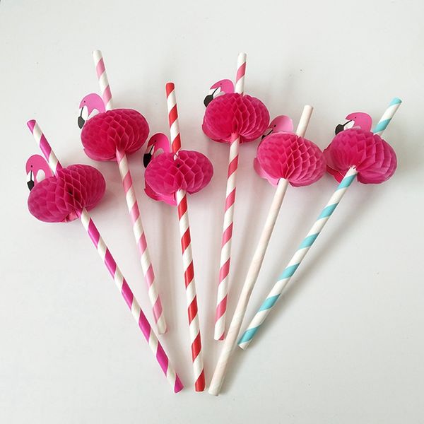 Flamingo Paper Straw Decorations 7 6 Inch Cocktail Drinking Straws