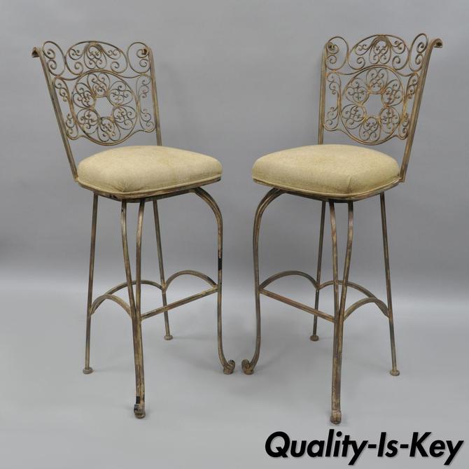 Pair Wrought Iron Fancy Swivel Bar Stool Woodard Andalusian
