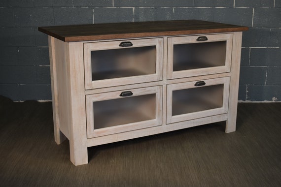 Rustic Farmhouse Style Solid Wood Kitchen Island With Four Etsy