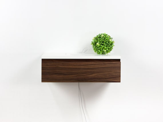 Blanca Walnut Front Floating Nightstand Drawer Wall Mount Etsy