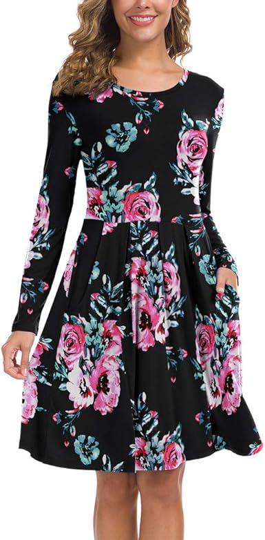 Korsis Women S Long Sleeve Pleated Loose Swing Casual Dress With