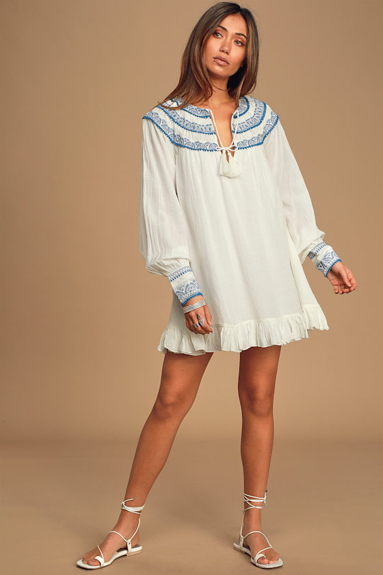 Free People Erin Ivory Embroidered Dress Long Sleeve Dress