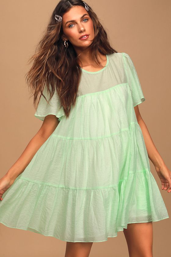 Cute Mint Dress Tiered Mini Dress Swing Dress Shift Dress