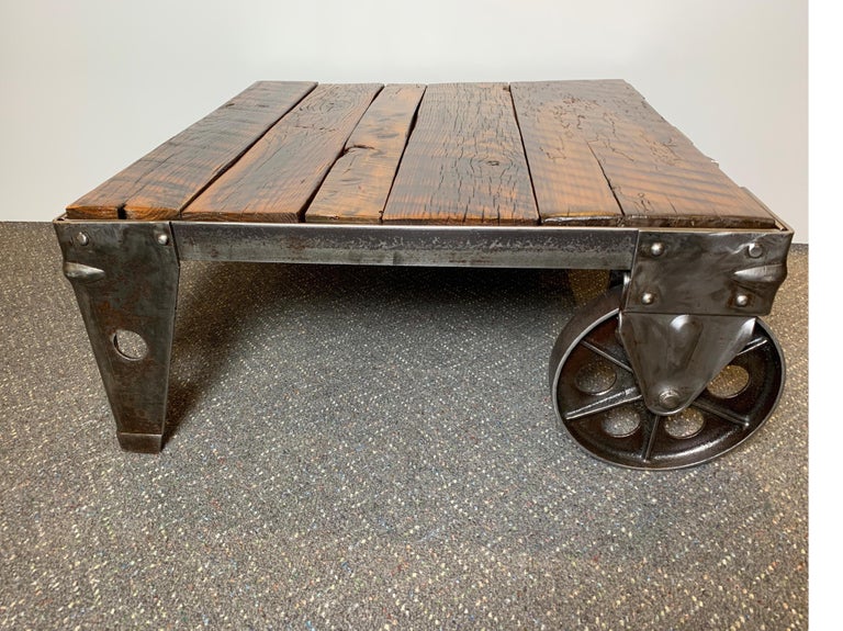 Industrial Factory Cart Fully Restored As A Coffee Table For Sale