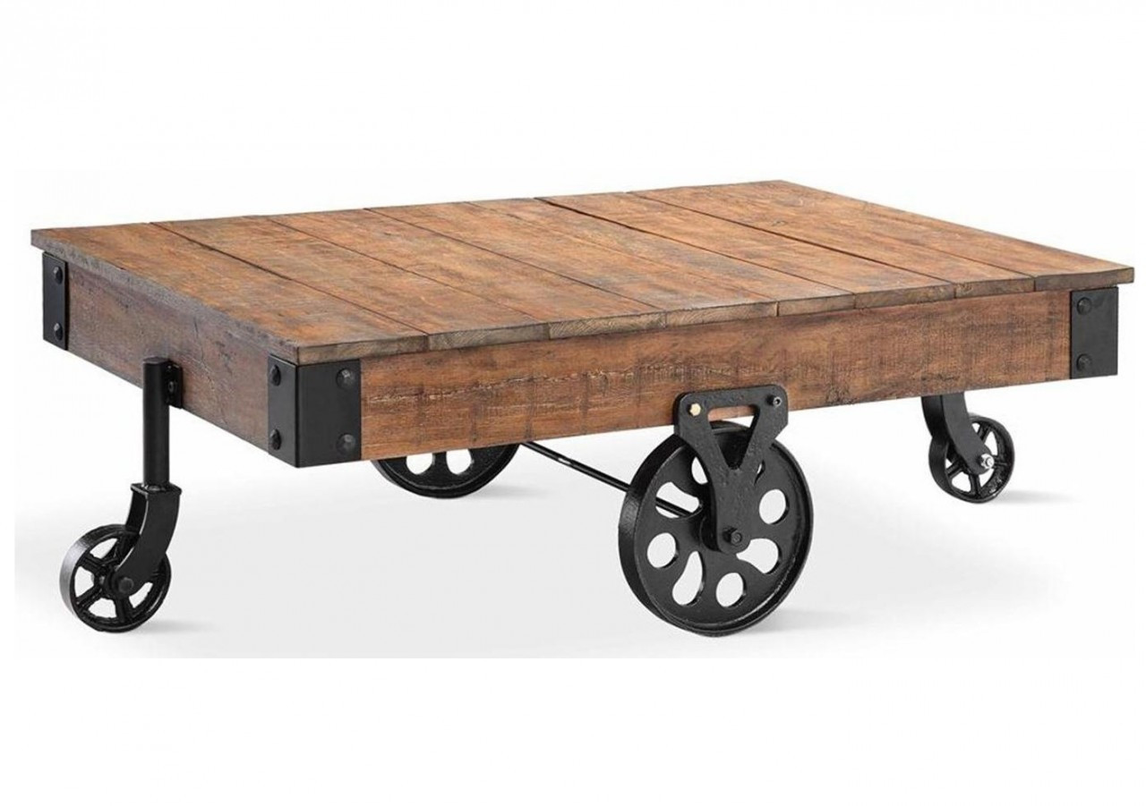 Wheels Cart Coffee Table Has Modern Factory Industrial Charm