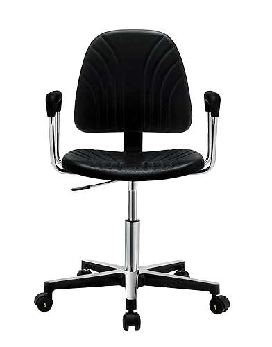 Esd work stool polyurethane brass drag chain acts as ground. Protection up to 10 9 ohms. Polyurethane resists stains punctures and chemicals.