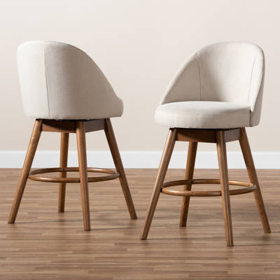 Nobpeint fabric upholstered barstool dining chair solid wood legs 24 tanset of 2. Beige fabric upholstered swivel bar stool features a modern and contemporary design that enhances the aesthetics of your interior. A swivel plate connects the base and the seat for easy maneuverability.