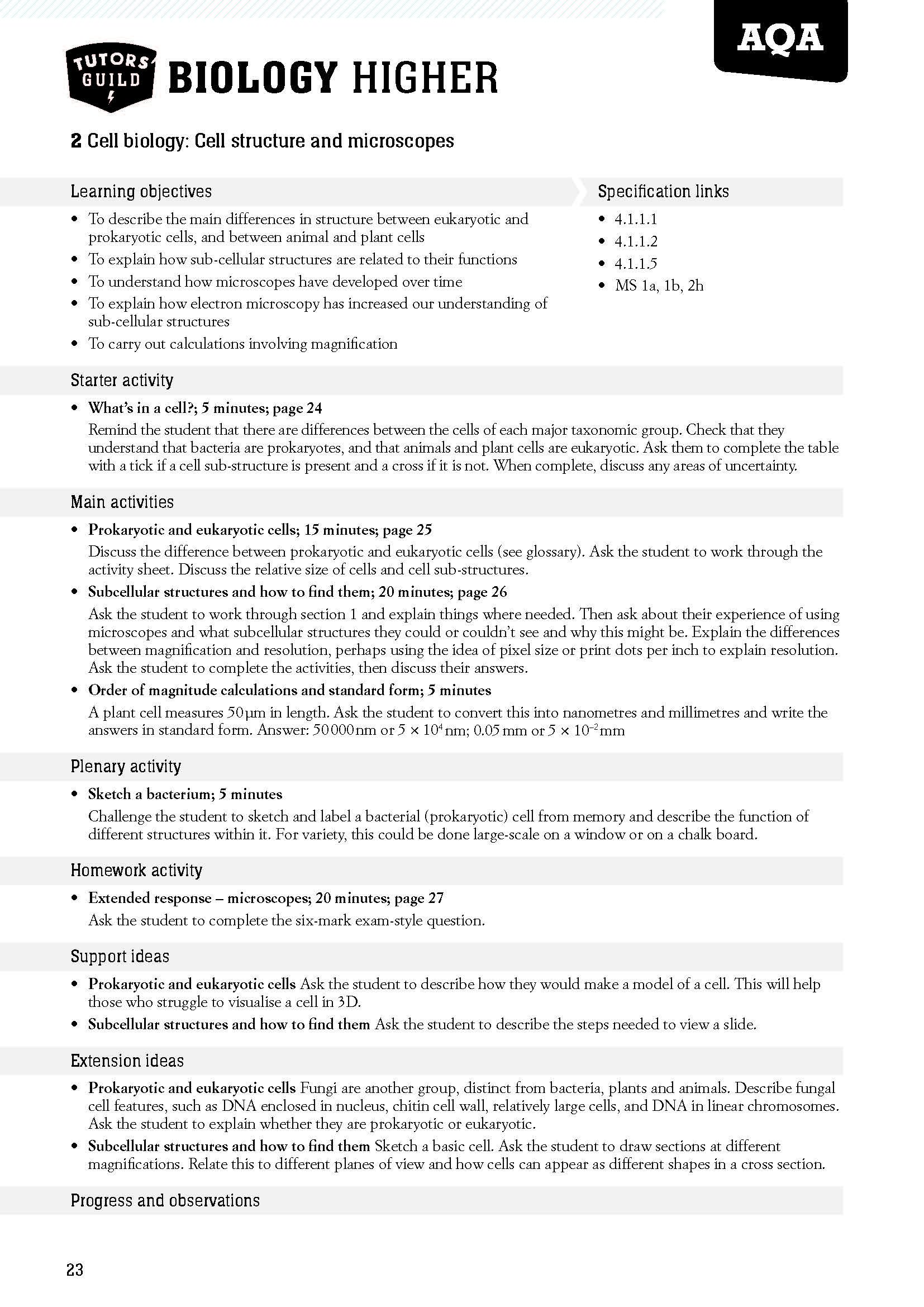 Tutors Guild Aqa Gcse 9 1 Biology Higher Tutor Delivery Pack