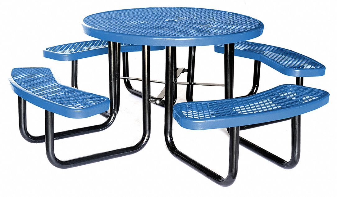 Grainger Approved Round Expanded Metal Picnic Table Blue 4hup6