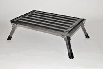 The solid one piece top provides a large sturdy and stable standing area and holds up to 300 lbs. Gain that extra step whenever and wherever you need it with the quick products folding step. Rubber gripping feet on each leg ensure that your step stays where it is placed.