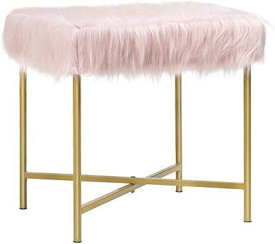Amazon Com Pink Entryway Ottoman Square Faux Fur Dressing Stool