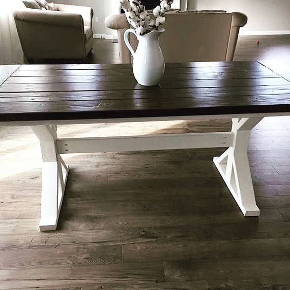 Modern Farmhouse Trestle Style Farm Table Handmade Overlin Designs