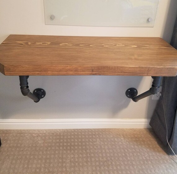 Floating Desk With 2 Thick Solid Wood Top And Pipe Etsy
