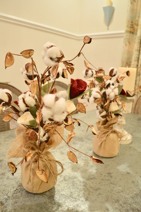 Farmhouse Cotton Felt Flower Centerpiece Rustic Christmas Etsy