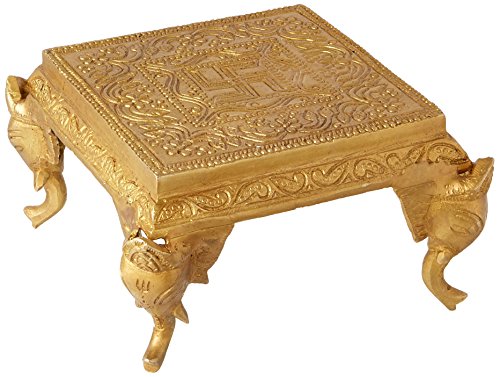 The Ethnic Story Golden Brass Carved Multipurpose Chowki Pata