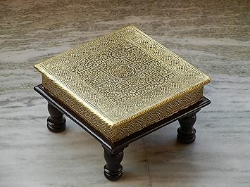 Buy Shivay Arts Wooden Ethnic Brass Chowki Bajot Pooja Chowki