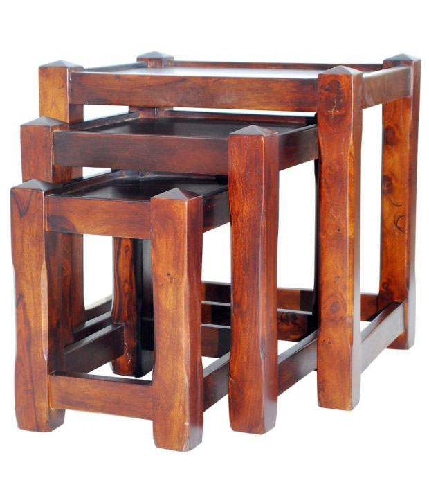 Buy Teak Wood Nested Stools In Walnut Finish By Exclusivelane