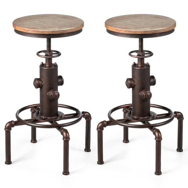 Shop Gymax Set Of 2 Industrial Bar Stool Solid Wood Water Pipe